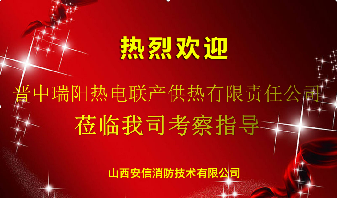2022年11月,晉中瑞陽熱電聯(lián)產(chǎn)供熱有限責任公司一行親臨我司考察,兩方領(lǐng)導以及工作人員共同在我司進行會晤, 雙方均表態(tài):將雙方關(guān)系提升為消防安全方面的戰(zhàn)略合作伙伴關(guān)系。